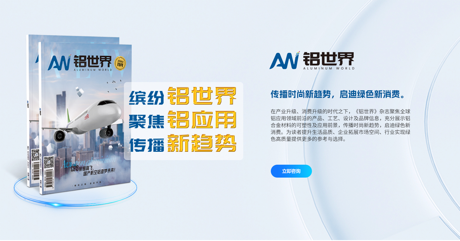 鋁加網(wǎng)(www.albiz.cn)是聞名鋁加工行業(yè)的垂直門戶網(wǎng)站,云聚鋁業(yè)新生態(tài),構(gòu)建鋁業(yè)新場景,以albiz.cn 網(wǎng)站為核心,以移動云端、鋁加工微信、鋁加網(wǎng)視頻號、《鋁型材專刊》和《鋁世界》雜志為載體,成為了鋁加工行業(yè)資訊和精準傳播的首選傳媒。鋁加網(wǎng),采集和發(fā)布全行業(yè)信息資訊,提供線上展覽、在線直播、短視頻、品牌策劃、品牌運營、品牌傳播等全方位的專業(yè)服務。